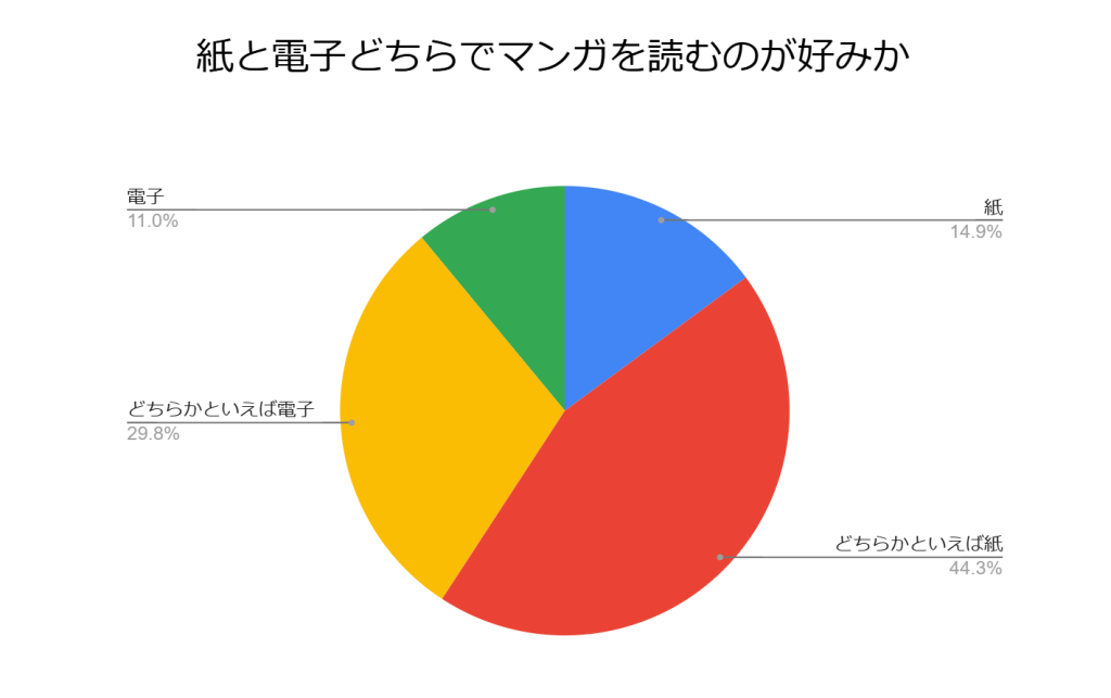 少なくとも漫画に関しては、紙媒体が人気であることがデータ示されていました。2024年に顧客満足度調査を実施する株式会社oricon MEが、「電子コミックサービス利用実態データ」において「マンガは『紙』派か『電子』派か」について調査を実施していました。その結果では紙で読みたい人が半分以上を占めていました。