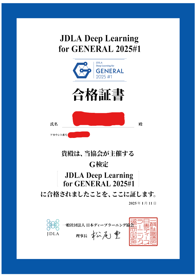 - 日本ディープラーニング協会(JDLA)が実施するAI・ディープラーニングの知識を証明する資格。