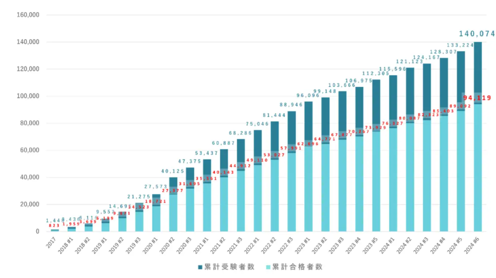 ※出典:一般社団法人日本ディープラーニング協会:G検定累計受験者数/累計合格者数推